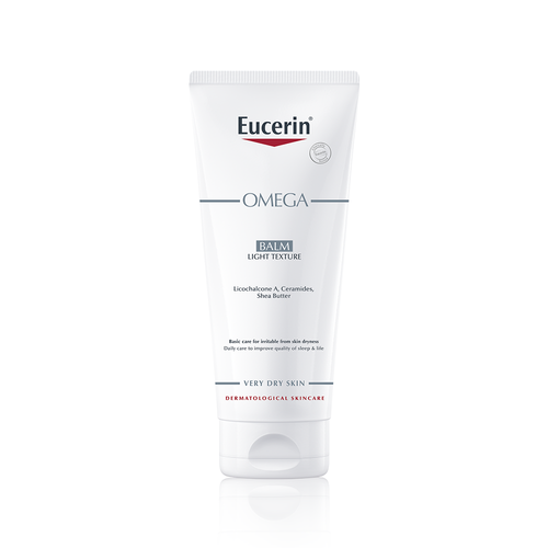 ยูเซอริน โอเมก้า บาล์ม ซึมเร็ว สำหรับผิวที่แห้งและผิวระคายที่มีสาเหตุจากผิวแห้ง ด้วย Licochalcone A สารสกัดจากธรรมชาติ ช่วยลดปัญหาผิวแห้ง และการระคายที่มีสาเหตุจากผิวแห้ง พร้อมผสาน Omega 3 & 6 fatty acids และ Ceramides ช่วยเติมไขมันที่จำเป็นเพื่อคืนความชุ่มชื้น เพื่อฟื้นบำรุงชั้นปกป้องผิวให้มี สุขภาพดีขึ้น และยังมี Shea Butter ที่ช่วยทำให้ชั้นปกป้องผิวดูแข็งแรง สามารถใช้ได้กับผิวเด็กทารกตั้งแต่แรกเกิด เพราะไม่มีส่วนผสมของน้ำหอม และสารระคายเคืองต่างๆ สามารถใช้ได้ในผิวที่บอบบางหรือไวต่อการระคายเคือง เพื่อช่วยดูแลปัญหาผิวแห้งกร้าน แดง คัน หรือผิวที่มีภาวะผื่นภูมิแพ้ผิวหนัง (Atopic Dermatitis) และหากใช้ผลิตภัณฑ์เป็นประจำสามารถช่วยลดอาการผื่นแพ้ แดงคัน เสริมสร้างเกราะปกป้องผิวให้สุขภาพดีขึ้นได้